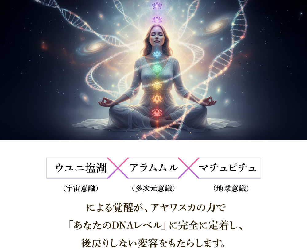 ※植物の摂取といった物理的な儀式は行わず、「アヤワスカの母の意識フィールド」と周波数のみを扱う、安全かつ穏やかなシャーマニックなDNA覚醒ワークです。